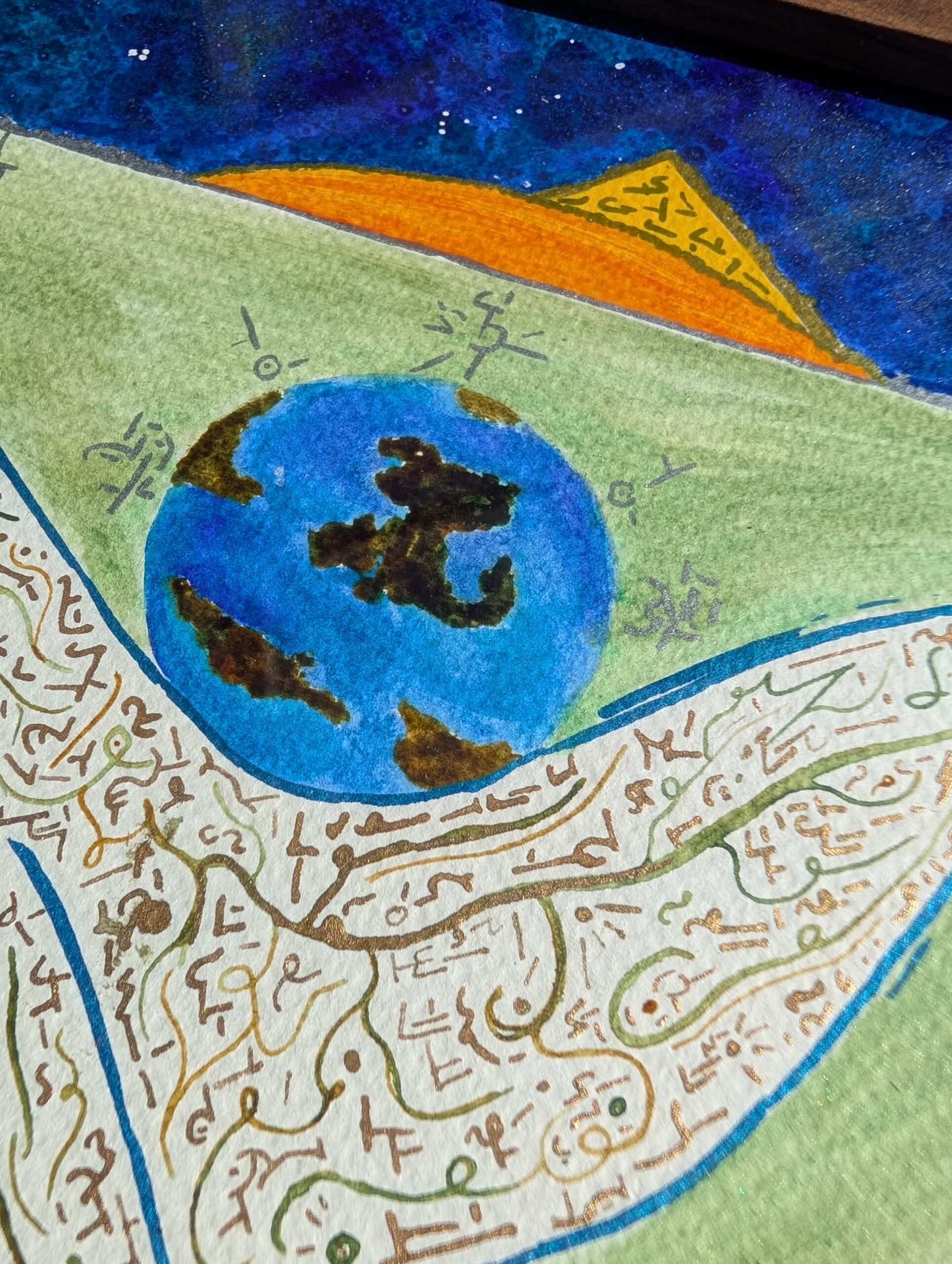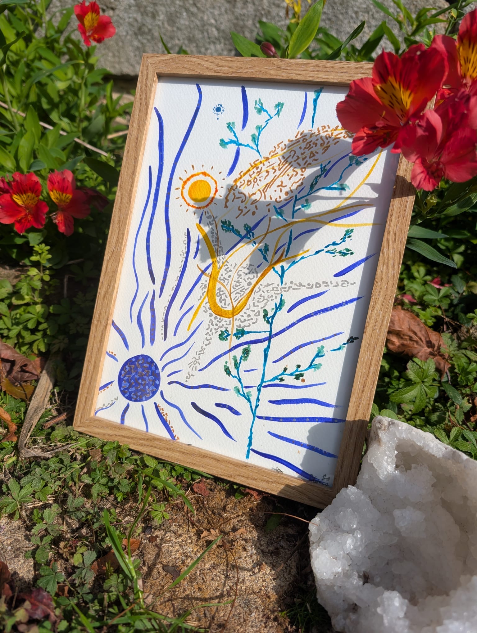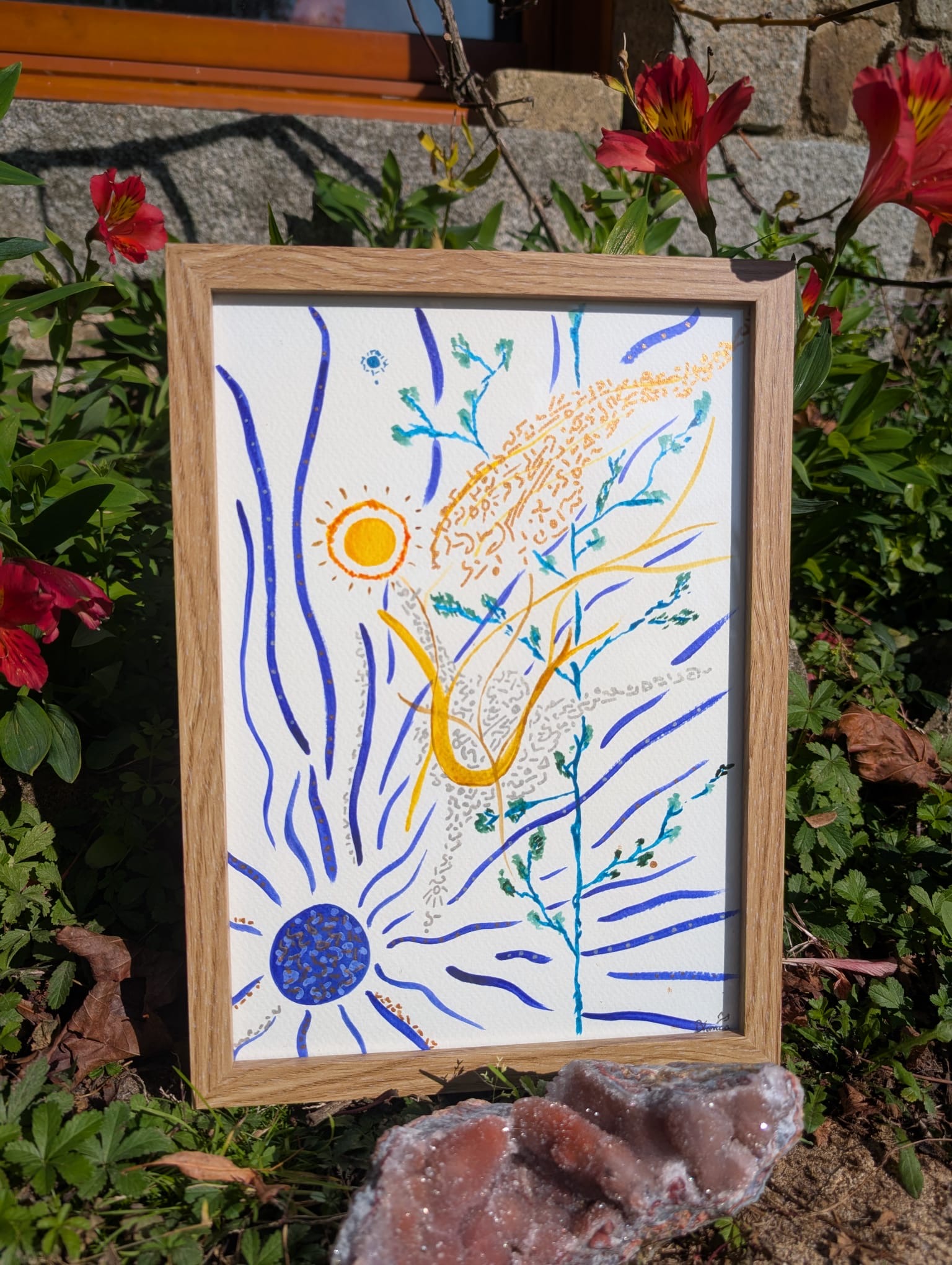 | Conception sacrée – 555 € Encre de chine et acrylique – 50×70 cm |