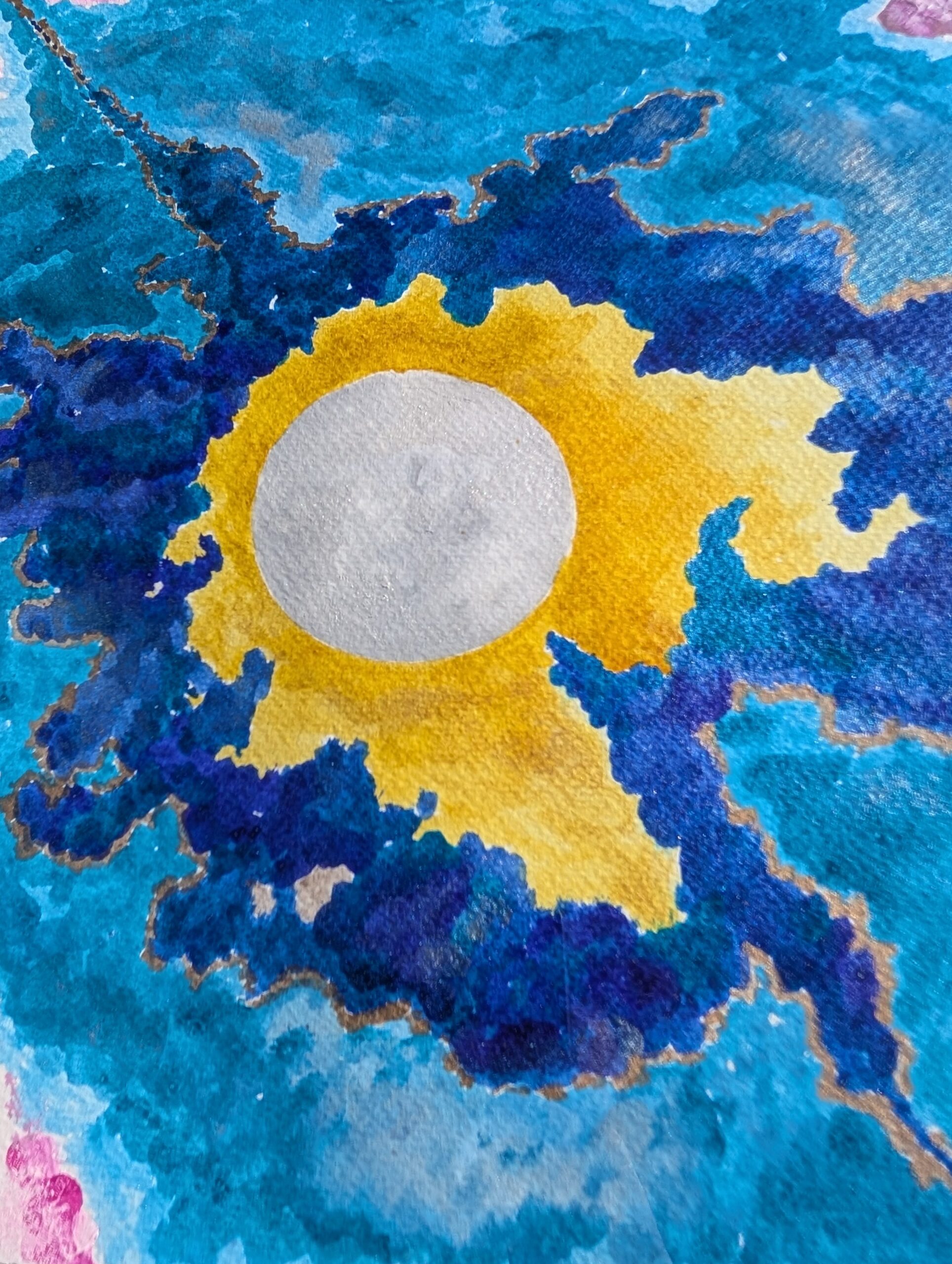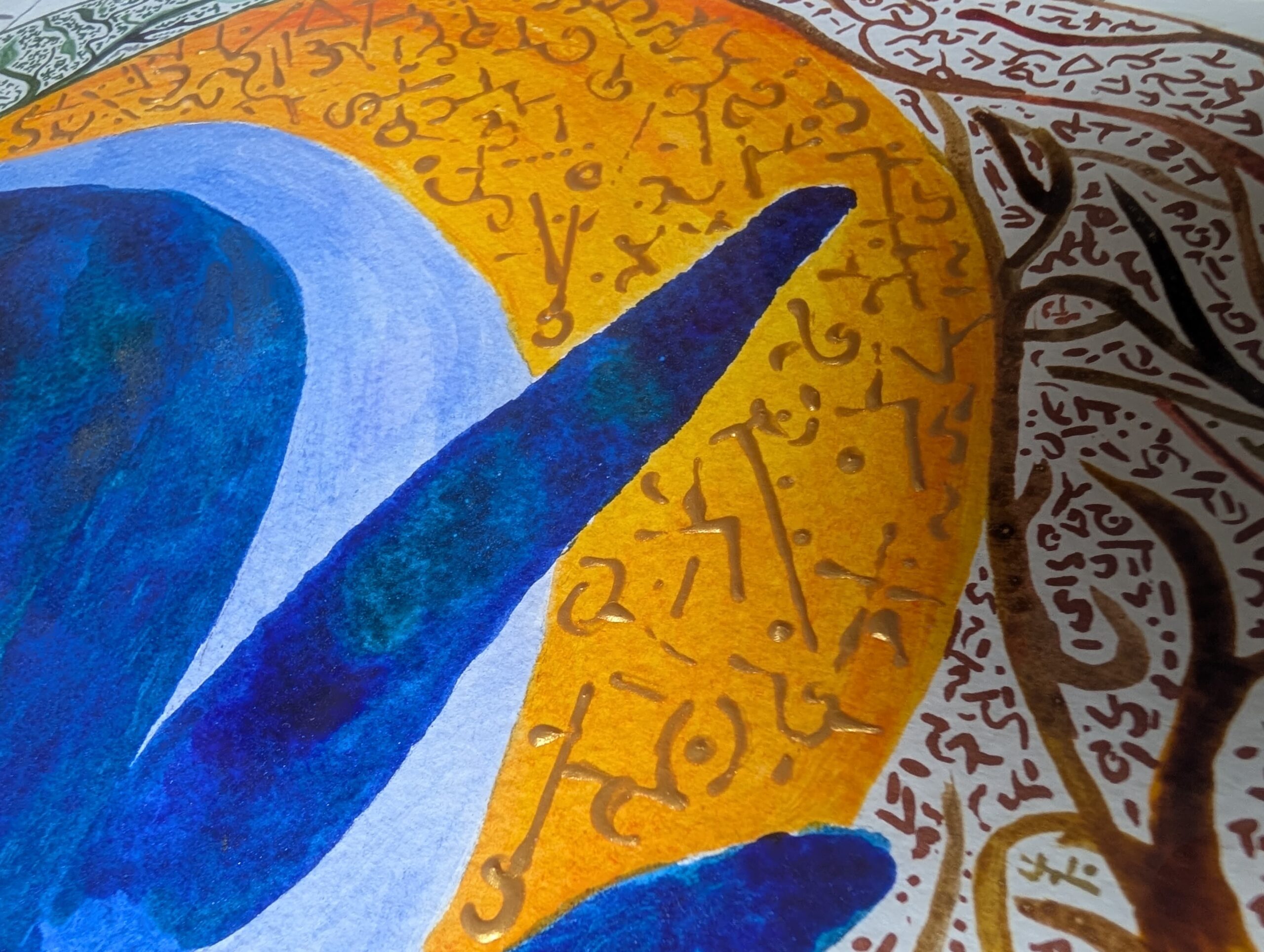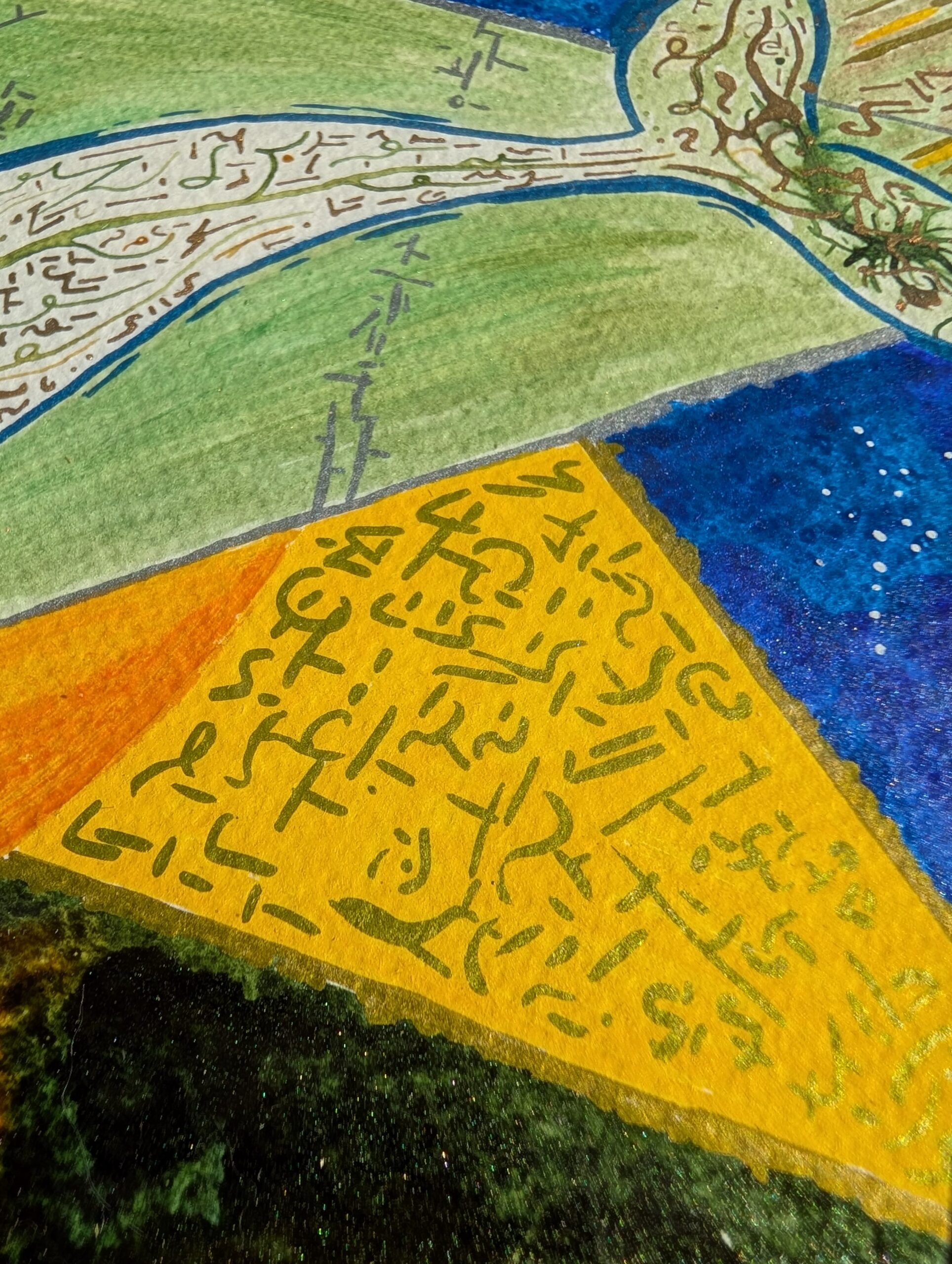 | Conception sacrée – 555 € Encre de chine et acrylique – 50×70 cm |