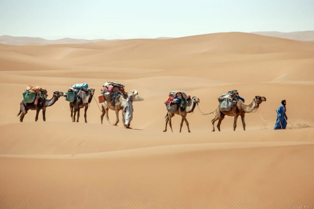 Marche afghane avec les chevaux et les ânes